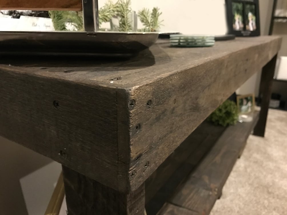 I made these display tables for a local organization to use in a wedding show this past year. After the show was done, they let me keep both tables. We are using one in the living room and the other one currently lives as a catch-all table in the shop. These were really enjoyable to make - it was a chance to take a step back and not be so precise which was nice. There are some changes I would make if I were to make another one but overall I think they turned out great!