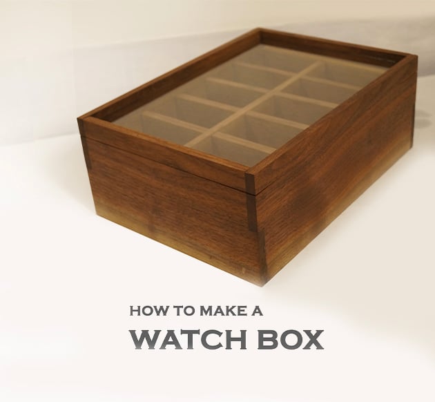 My brother-in-law loves watches, so last year for Christmas I made him this watch box that could hold up to 10 watches in the top. The top tray lifts out to reveal more storage space as well. Not only does it store the watches, but the large glass lid makes it double as a display case.